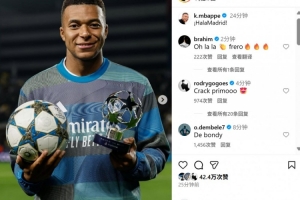 本场比赛姆巴佩上演帽子戏法,赛后他也在社媒晒出与全场最佳奖杯以及比赛用球的合影。