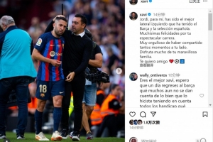 体育资讯10月8日讯 阿尔巴将在本赛季结束后退役,哈维社媒发文祝福。