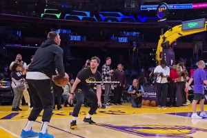 湖人vs掘金詹姆斯摊手视频
